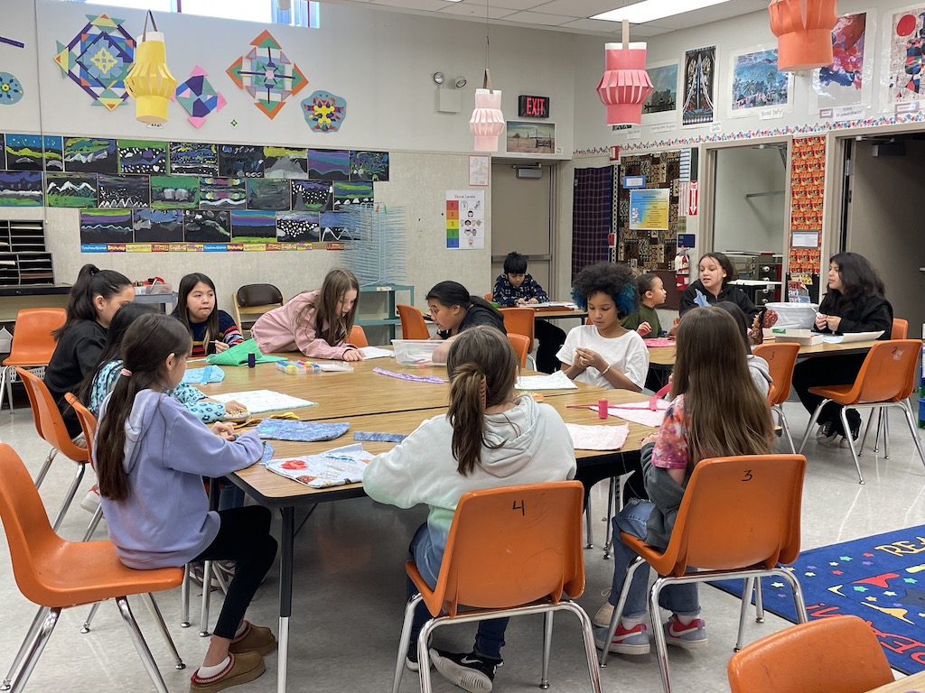 Every Friday that I am in Anchorage, I host Crafty Makers at Taku Elementary School. Crafty Makers is a stitching program for 4th, 5th, and 6th grade students. We make things with fiber and stitch.