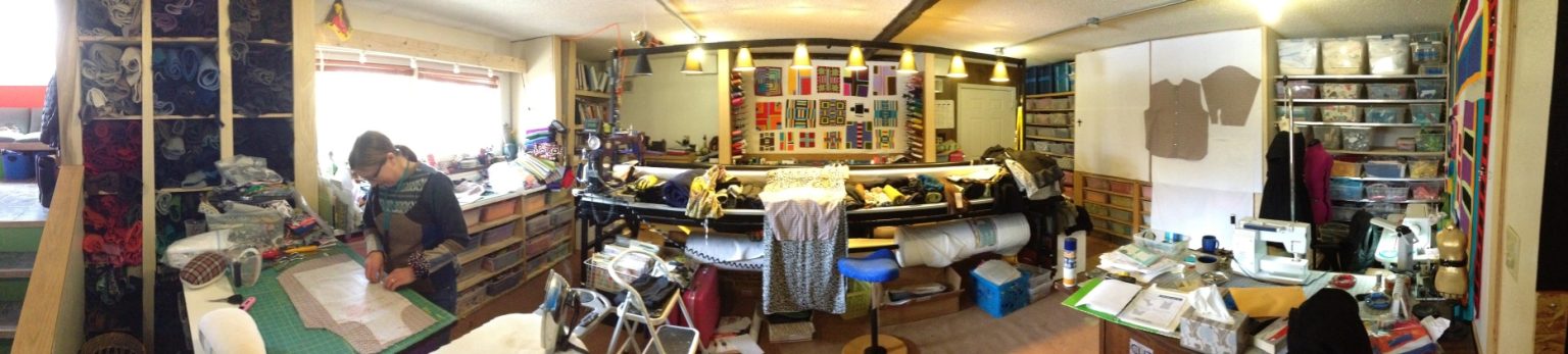 In April 2014, I was deep into my recycled wool phase. I thought I would take a few months off from quilting and develop an upcycled sweater line! I called it Arcticouture. Anyway, here is my studio at that moment in time. It gets worse before it gets better.