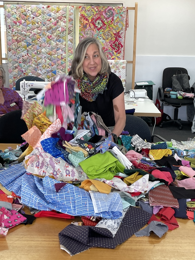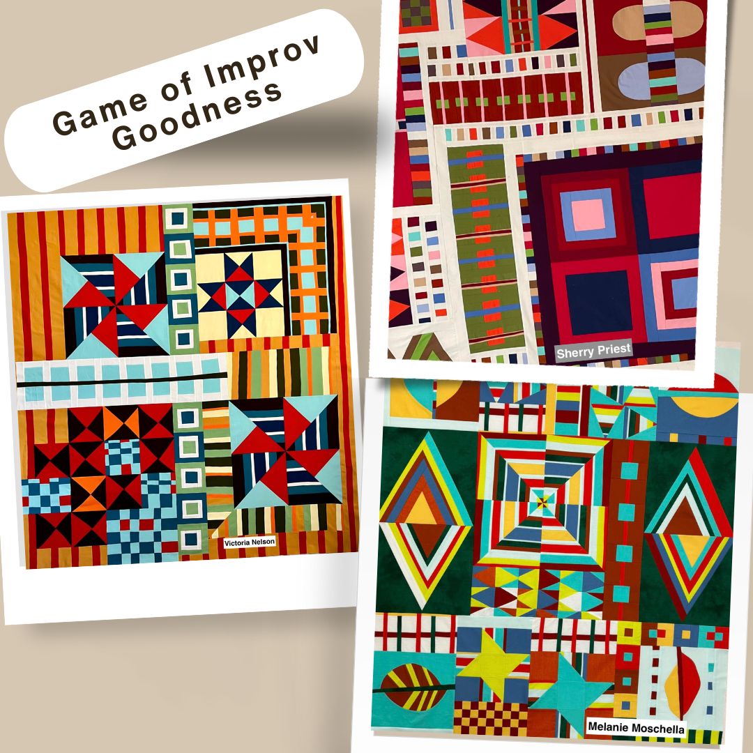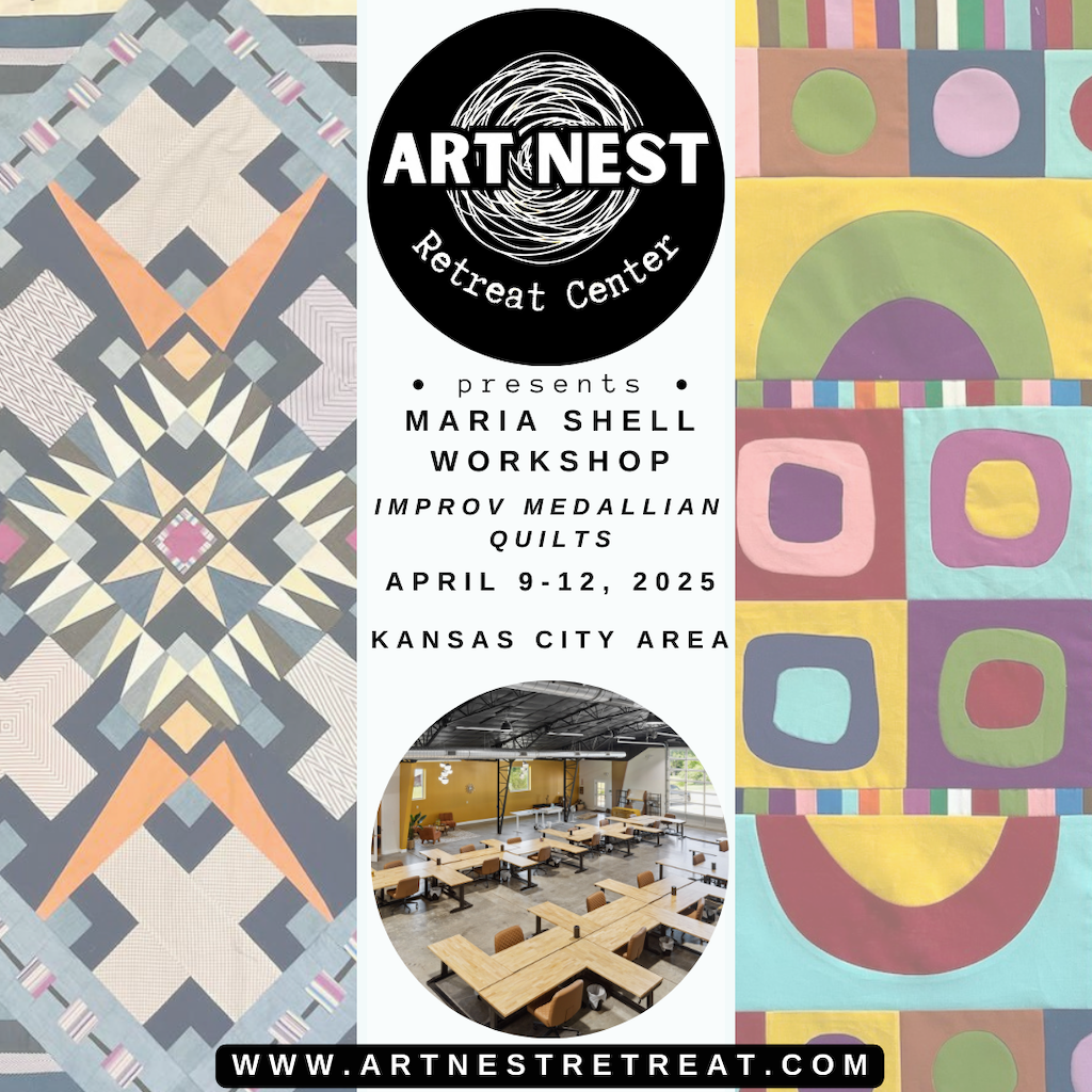 Stitching Towards Discovery 2025 This is my original long format workshop. We meet twice a month for guest speakers, lectures, student feedback and consultation sessions, Stitcher’s Salon (where we chat about quilts, art, inspiration, and other things), prompts to get you stitching, and more. The workshop ends with THE BIG TADA where students share their portfolios. It is amazing. If you are ready to take your work to the next level, this is the workshop for you. You can watch the previous BIG TADAS here. Here is a peak at one student’s portfolio for 2024. |